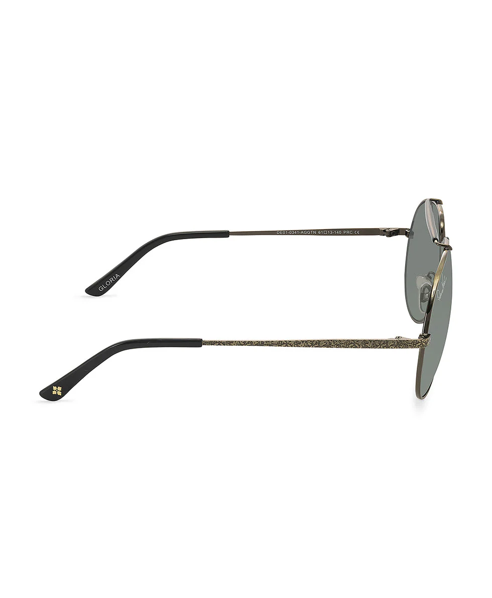 Take flight with the Gloria Sunglasses, which elevate a classic style to new heights with this modern aviator design. Celebrating an iconic female hero, Gloria Steinem, a pioneer in the equal rights movement, and Amy Johnson, the first woman pilot to fly solo from London to Australia, these frames feature a streamlined rim in brushed gold. Expertly curved pilot lenses, temple arms with an etched tooling filigree pattern, acetate temple tips, and a chic brow bar in black acetate ensure you cut a smart profile, and the adjustable nose pads make this bold style a great fit for any face.